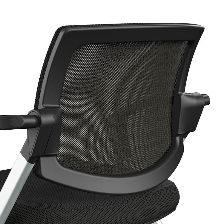 • Armrests are ergonomically contoured and finished with durable polypropylene, while breathable nylon mesh backrest is great for staying cool in warmer environments