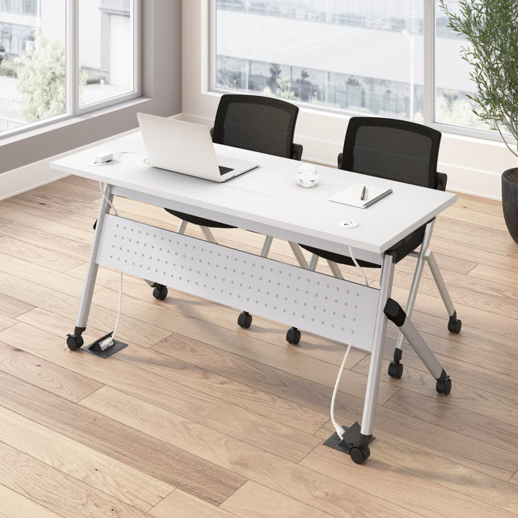 • Bundle includes: 60" W Folding Training Table, Mesh Back Folding Chairs - Set of 2, 2-inch Desktop Power Grommet with AC Outlet and USB-A/USB-C Ports - Set of 2