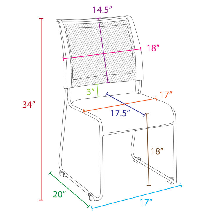 Each chair boasts a spacious 17" x 17.5" fabric seat, an 18" x 14.5" mesh back, and a convenient 18" seat height from the floor.