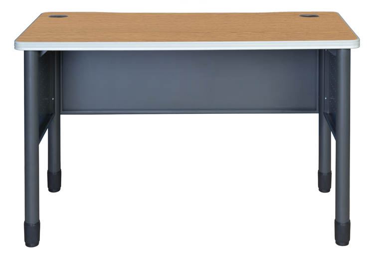 The 1¼-inch thick high-pressure laminate top includes a gray 9mm protective edge banding for a professional look, while built-in wire management grommets help keep power and data cables organized to minimize tripping hazards.