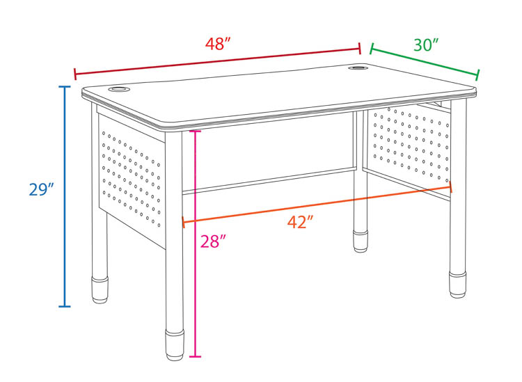 • The round steel tube legs, equipped with leveling glides, provide a stable desktop and can be easily adjusted