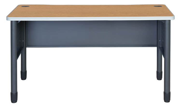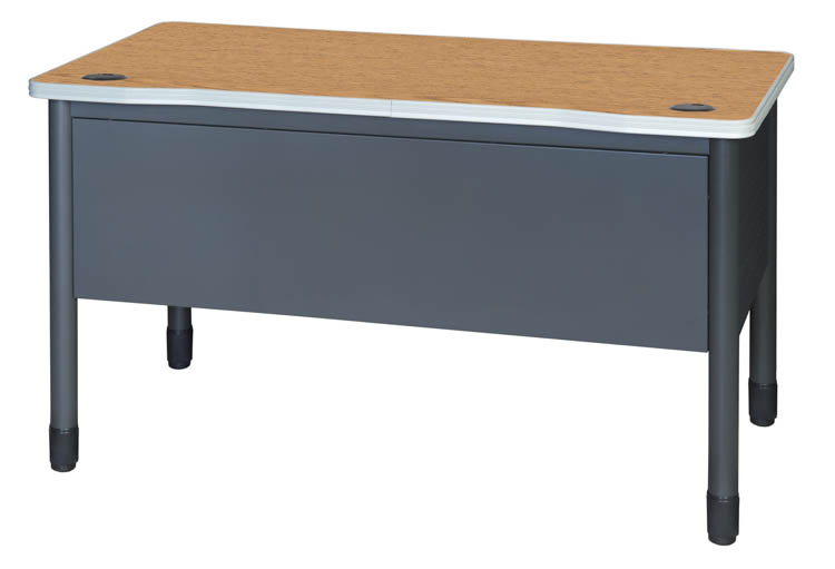 The 1¼-inch thick high-pressure laminate top includes a gray 9mm protective edge banding for a professional look, while built-in wire management grommets help keep power and data cables organized to minimize tripping hazards.