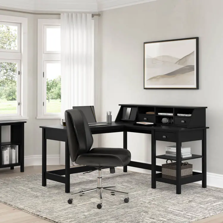 The Bush Furniture Broadview 60"W L-Shaped Computer Desk with Desktop Organizer offers plenty of room to spread out while keeping work materials accessible.
