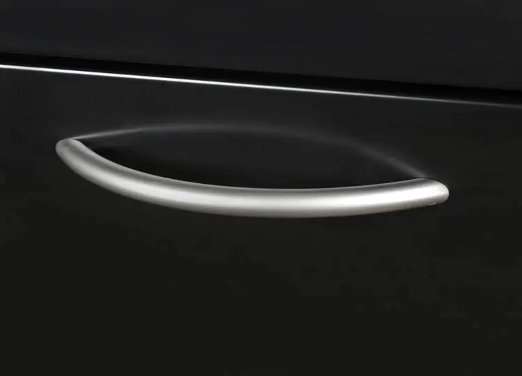 • Thermal fused melamine laminate desktop is scratch, stain and scald resistant and is finished with a black T-Mold edge banding