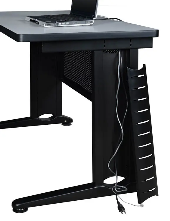 Black metal C-Legs have a vented compartment with removable cover that runs the length of the leg.