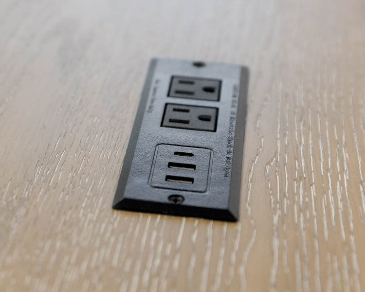 Power center with USB/AC outlets allows for multiple devices to be plugged in with ease.