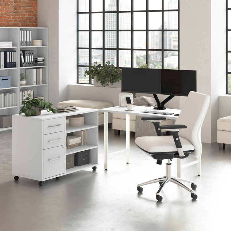 The Bush Business Furniture Hustle 48" W x 24" D Computer Desk and Storage Cabinet with Drawers and Shelves provides the form and function needed to support your entrepreneurial spirit without breaking the bank.