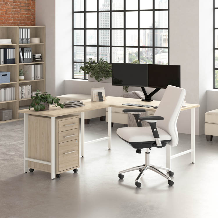 The Bush Business Furniture Hustle 60" W x 30" D L-Shaped Computer Desk with 3 Drawer Mobile File Cabinet provides the form and function needed to support your entrepreneurial spirit without breaking the bank.