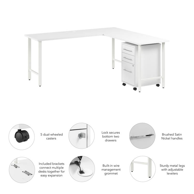 The Bush Business Furniture Hustle 72" W x 24" D L-Shaped Computer Desk with 3 Drawer Mobile File Cabinet provides the form and function needed to support your entrepreneurial spirit without breaking the bank.