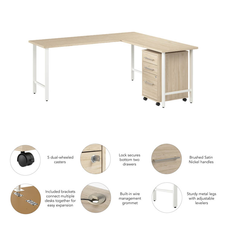 The Bush Business Furniture Hustle 72" W x 24" D L-Shaped Computer Desk with 3 Drawer Mobile File Cabinet provides the form and function needed to support your entrepreneurial spirit without breaking the bank.