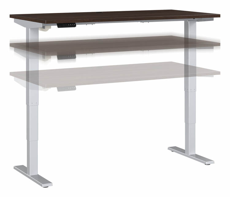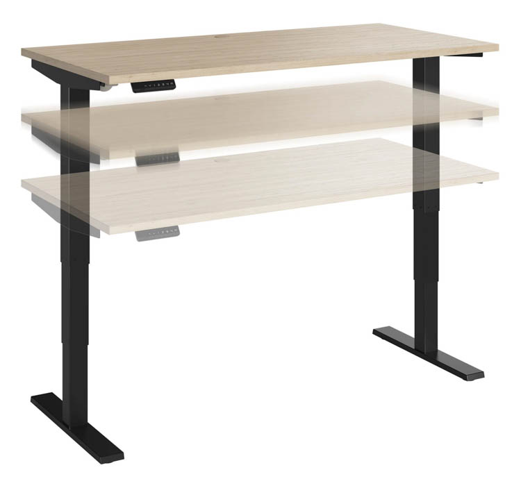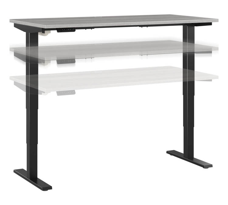 Three stage units lift the 60" W x 30" D desktop anywhere from 28" to 48" from the floor at a speed of 1.25" per second so you can change positions without missing a beat.