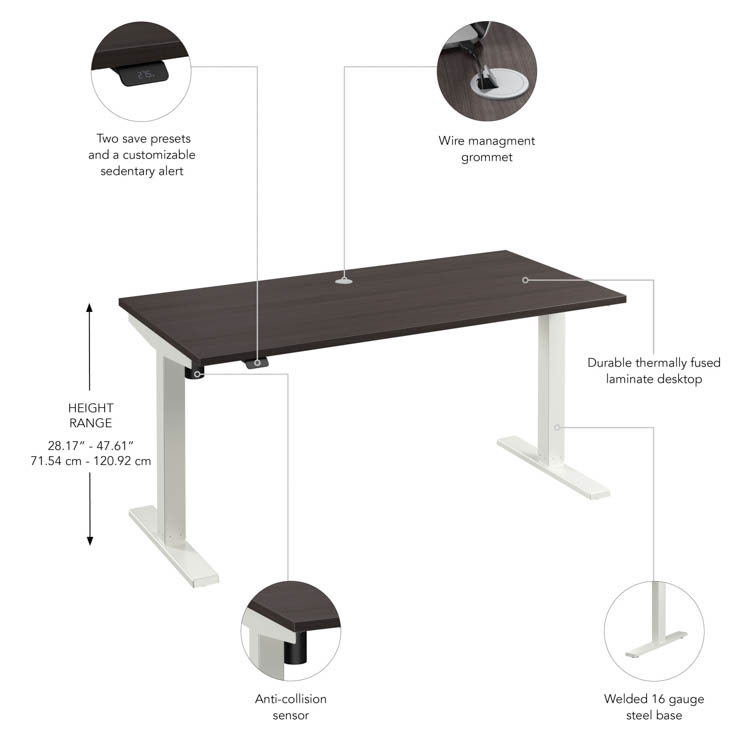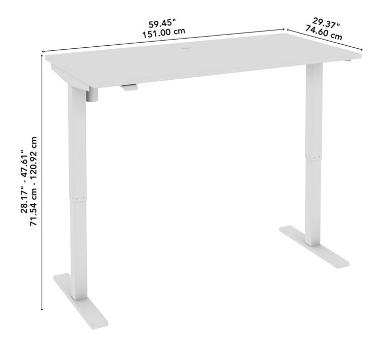 • Height Adjustable Standing Desk includes a motorized base and 60" W x 30" D top surface with built-in wire management