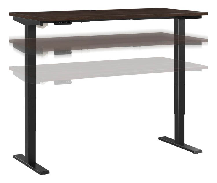 Three stage units lift the 60" W x 30" D desktop anywhere from 28" to 48" from the floor at a speed of 1.25" per second so you can change positions without missing a beat.