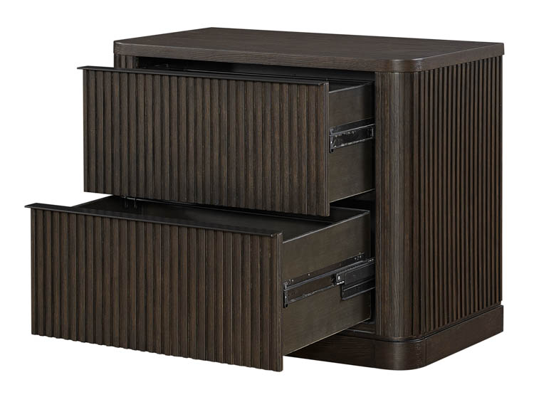 • Unique slat fluted tambour detailing adds texture and enhances the contemporary design