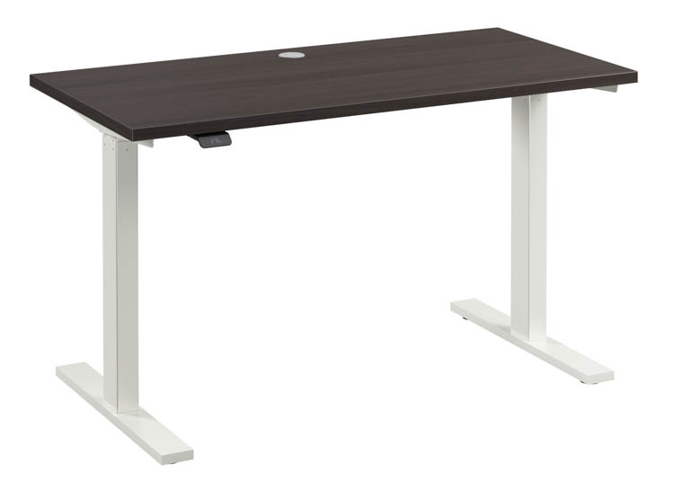 The electric adjustable height Desk includes a 10' power cord and smoothly lifts from a low of 27" to a high of 46.7" at the push of a button.