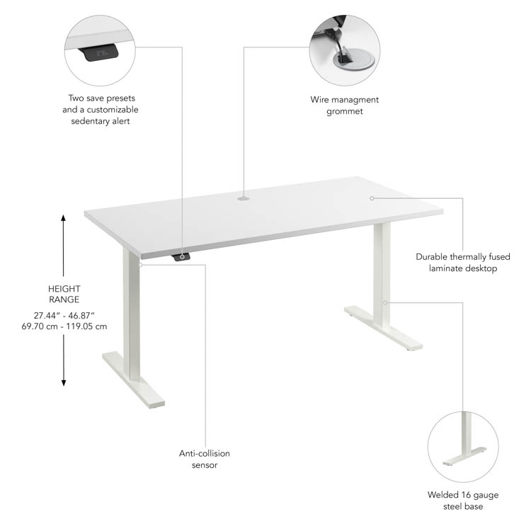 Have a healthy and productive day at the office with the Move 60 Series by Bush Business Furniture 60" W x 30" D Height Adjustable Standing Desk.