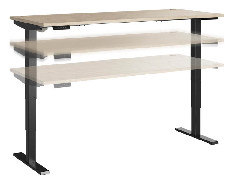 Three stage units lift the 72" W x 30" D desktop anywhere from 28" to 48" from the floor at a speed of 1.25" per second so you can change positions without missing a beat.