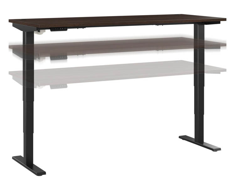 Three stage units lift the 72" W x 30" D desktop anywhere from 28" to 48" from the floor at a speed of 1.25" per second so you can change positions without missing a beat.