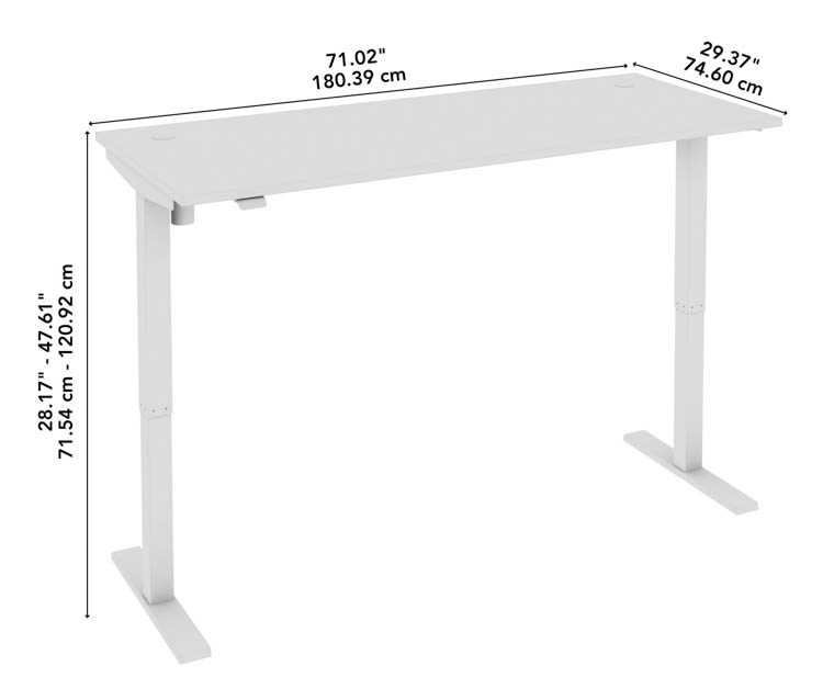 • Height Adjustable Standing Desk includes a motorized base and 72" W x 30" D top surface with built-in wire management