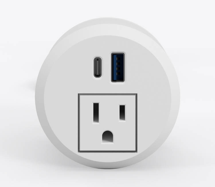 • Powered grommets keep devices charged with an AC outlet and USB-A/USB-C ports; 6-foot cord plugs into standard wall outlet
