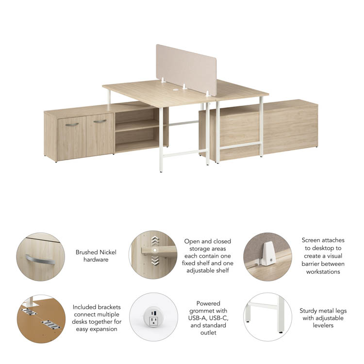 • Bundle Includes: 60-inch Computer Desk (2), Low Storage Cabinet with Doors and Shelves (2), Desktop Privacy Screen (1), Desktop Power Grommet with AC Outlet and USB-A/USB-C Ports (2)