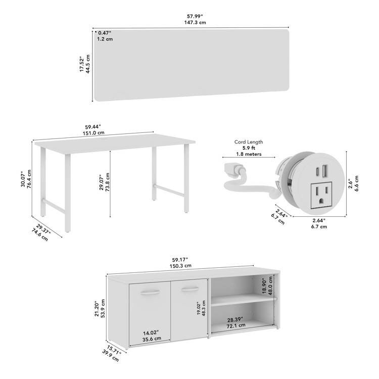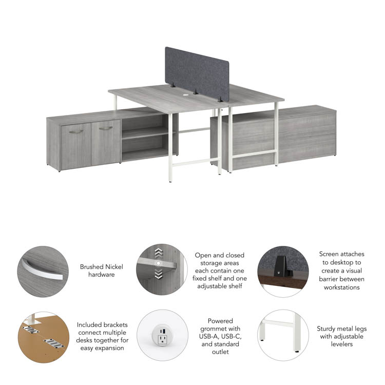 • Bundle Includes: 60-inch Computer Desk (2), Low Storage Cabinet with Doors and Shelves (2), Desktop Privacy Screen (1), Desktop Power Grommet with AC Outlet and USB-A/USB-C Ports (2)