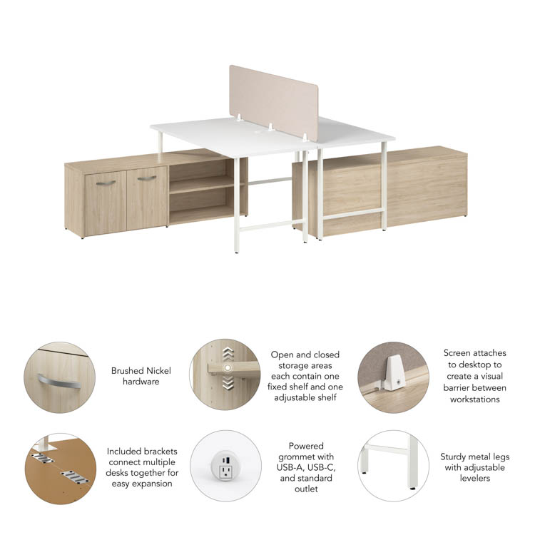 • Bundle Includes: 60-inch Computer Desk (2), Low Storage Cabinet with Doors and Shelves (2), Desktop Privacy Screen (1), Desktop Power Grommet with AC Outlet and USB-A/USB-C Ports (2)