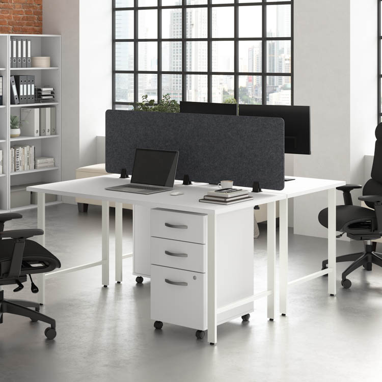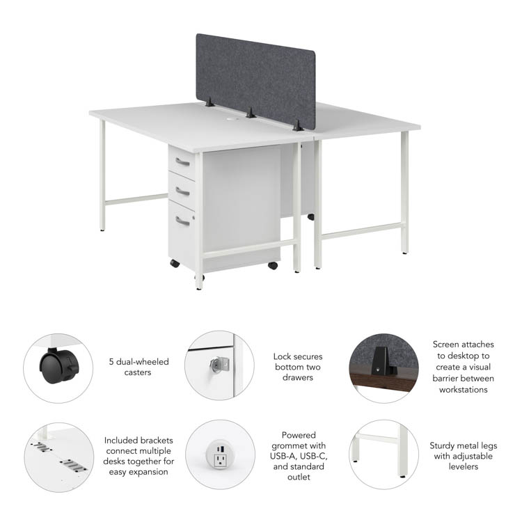 • Bundle Includes: 60-inch Computer Desk (2), 3 Drawer Mobile File Cabinet (2), Desktop Privacy Screen (1), Desktop Power Grommet with AC Outlet and USB-A/USB-C Ports (2)