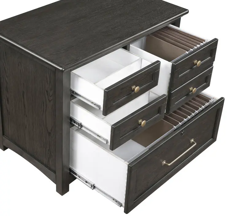 * Bottom drawer is lockable & accommodates legal and letter sized files
