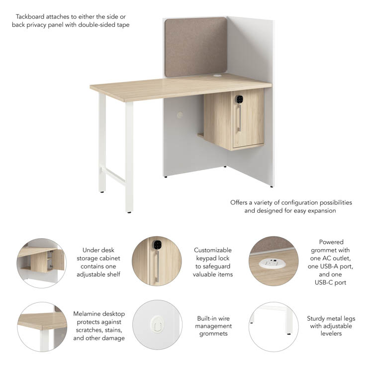 Set up the included tackboard on either the back or side panels to display memos and reminders or give your workstation a personal touch with pictures and office decor.