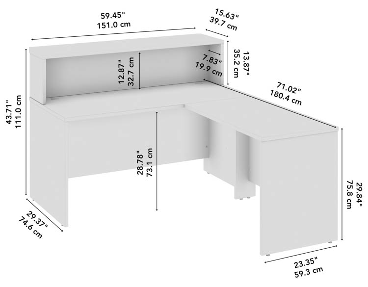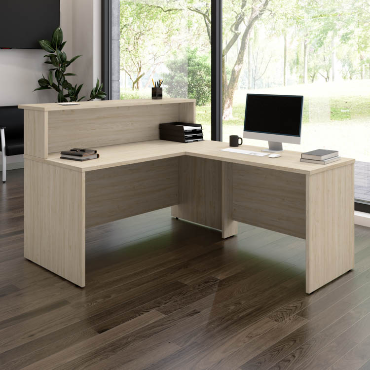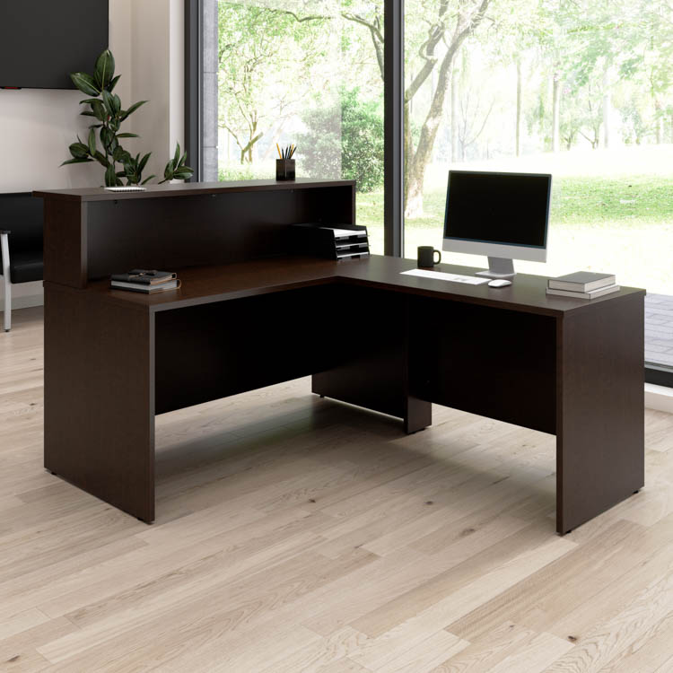 This commercial-grade L receptionist desk has been meticulously tested to meet or exceed ANSI/BIFMA quality standards for safety, durability, and performance.