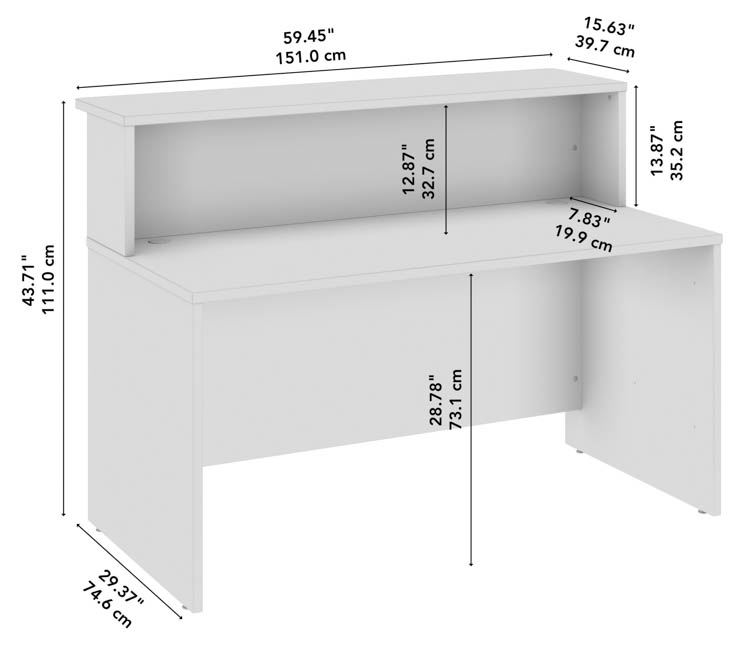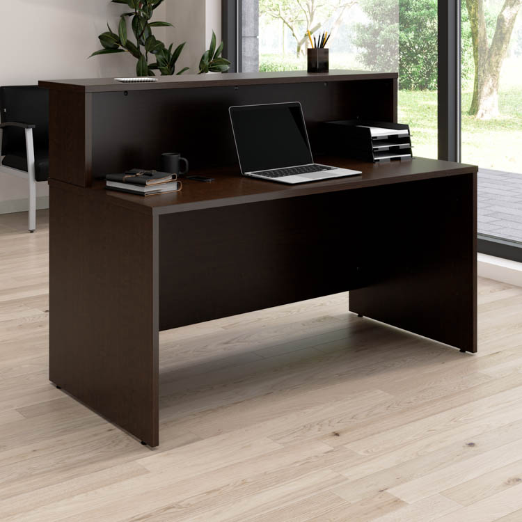 • 60"W x 30"D Reception Desk with Shelf offers an ideal way to check in visitors to your office's waiting room