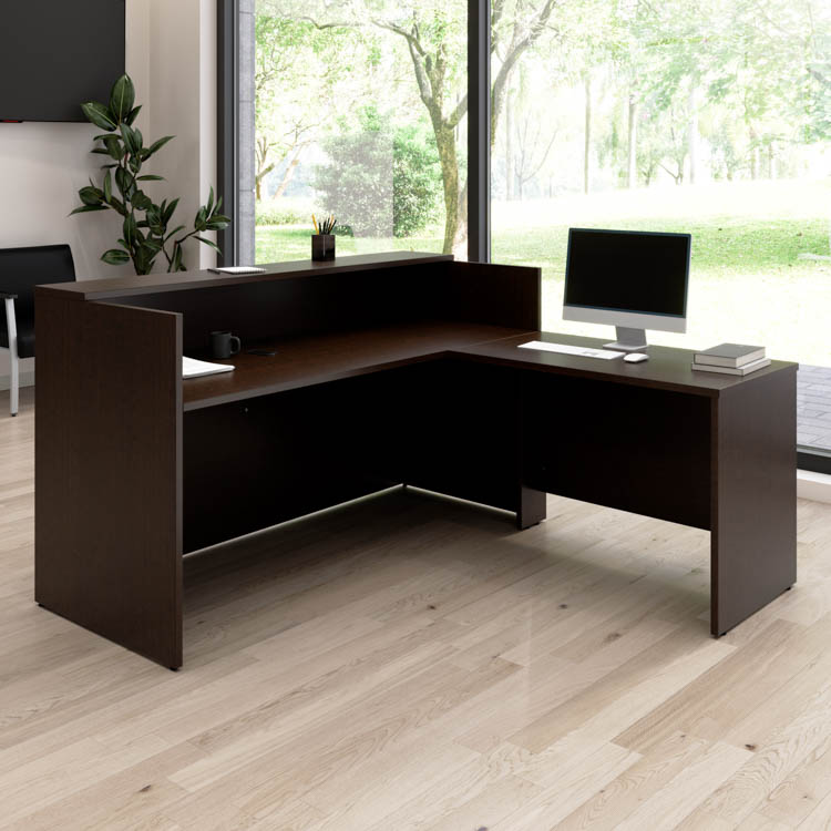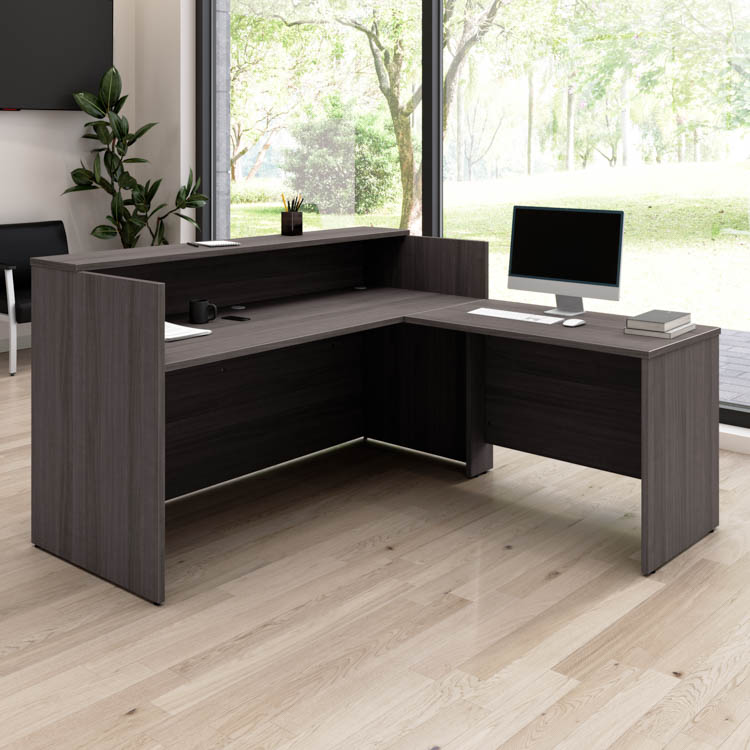 This commercial-grade L receptionist desk has been meticulously tested to meet or exceed ANSI/BIFMA quality standards for safety, durability, and performance.