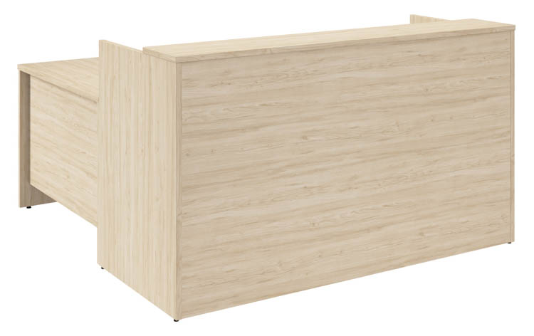 The durable thermally fused laminate surface protects against scratches, stains, and other cosmetic damage to preserve the modern reception desk's appearance throughout years of regular use.