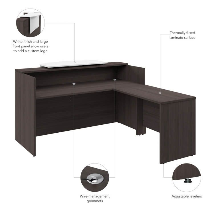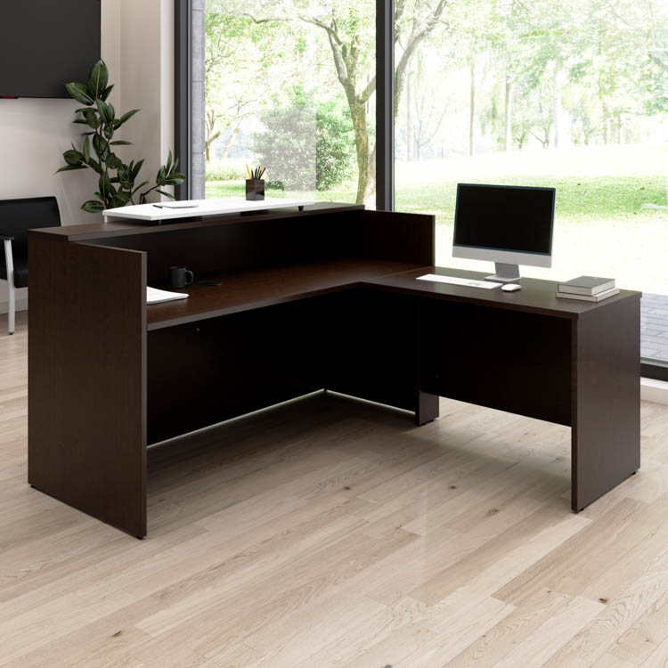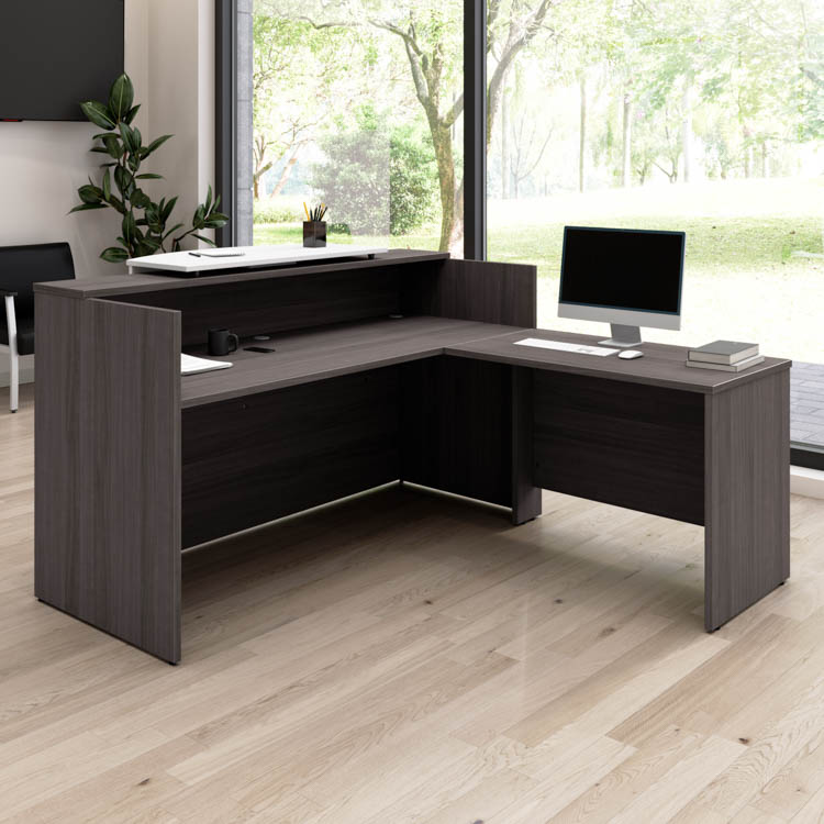 This commercial-grade L receptionist desk has been meticulously tested to meet or exceed ANSI/BIFMA quality standards for safety, durability, and performance.