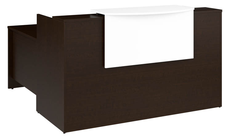 • Bundle includes: 72"W x 30"D Reception Desk with Shelf, 42"W Desk Return, Bow Front Reception Counter