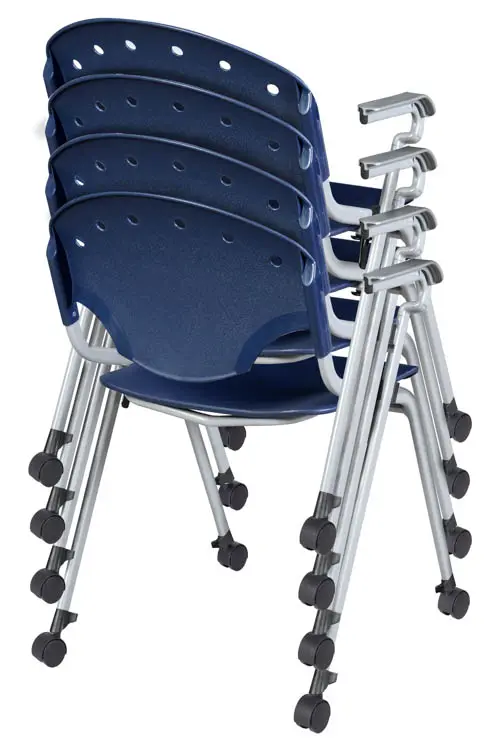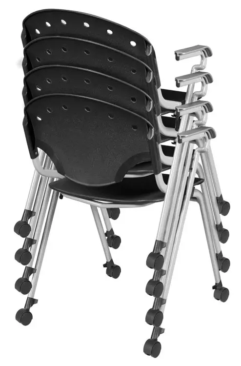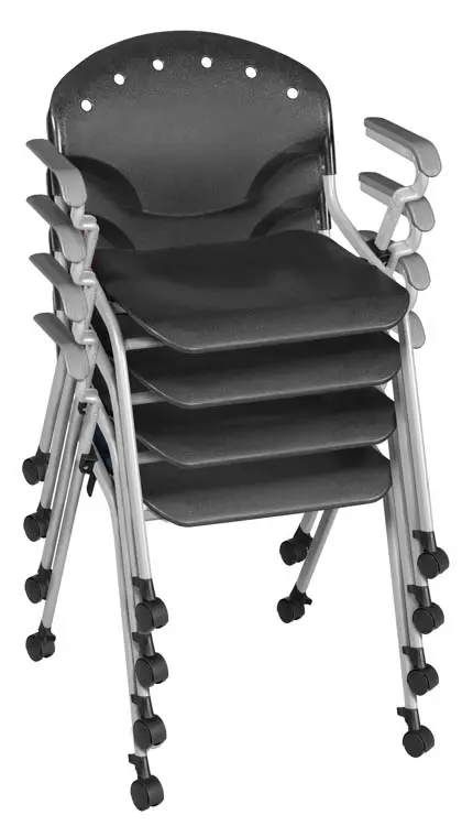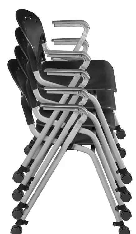 • Mobile Stack Arm Chair with Casters – Smooth-rolling wheels provide effortless mobility for reconfiguring training rooms, classrooms, or offices