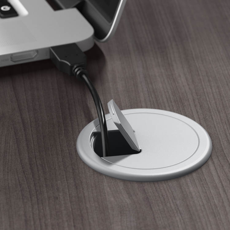 The 10-foot power cord plugs into a standard outlet so the rising desk can be used in virtually any setting.
