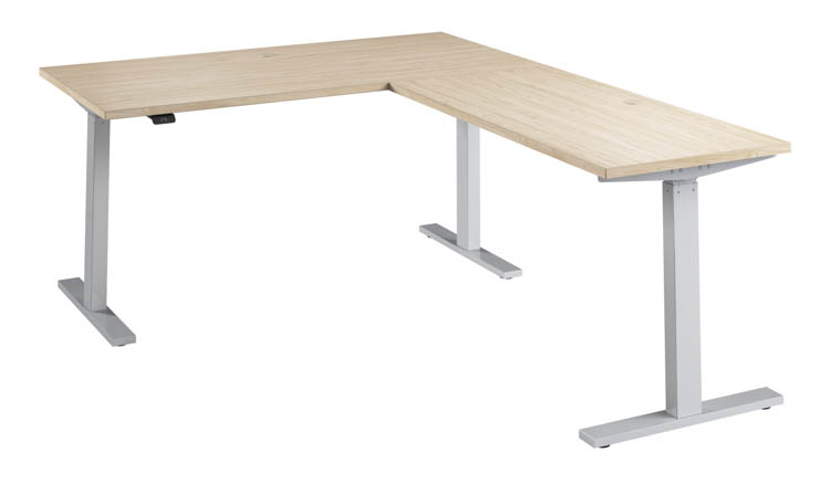 The standing L-desk also features an anti-collision sensor that stops movement when an object is detected.