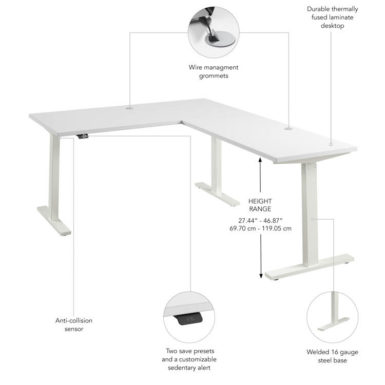 • Easy to Use, Intuitive Controls: Simple control panel allows for quick adjustments; just lift up or press down to change the L shaped sit-stand desk's height