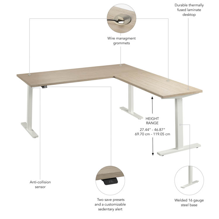 • Easy to Use, Intuitive Controls: Simple control panel allows for quick adjustments; just lift up or press down to change the L-shaped sit-stand desk's height