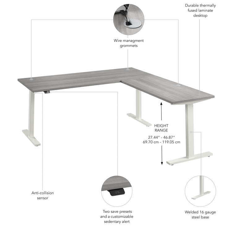 72in W Height Adjustable L-Shaped Standing Desk by Bush Furniture