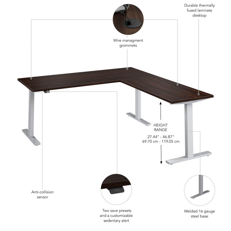 72in W Height Adjustable L-Shaped Standing Desk by Bush Furniture