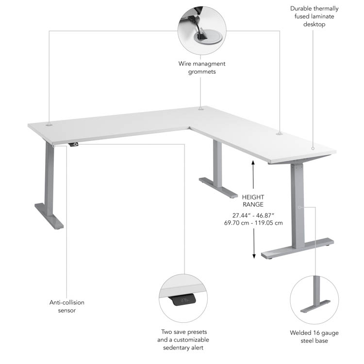 • Easy to Use, Intuitive Controls: Simple control panel allows for quick adjustments; just lift up or press down to change the L-shaped sit-stand desk's height
