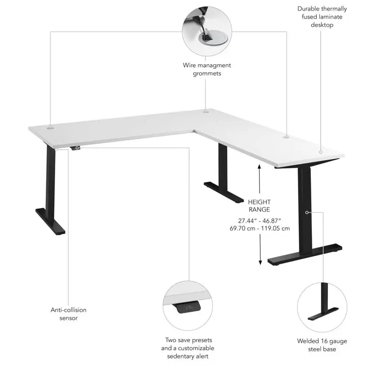• Easy to Use, Intuitive Controls: Simple control panel allows for quick adjustments; just lift up or press down to change the L-shaped sit-stand desk's height