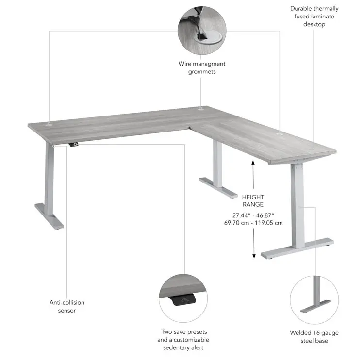 • Easy to Use, Intuitive Controls: Simple control panel allows for quick adjustments; just lift up or press down to change the L-shaped sit-stand desk's height