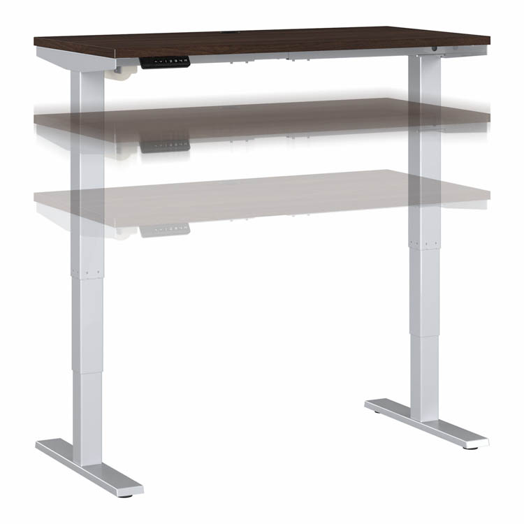 Three stage units lift the 48" W x 24" D desktop anywhere from 28 to 48" from the floor at a speed of 1.25" per second.