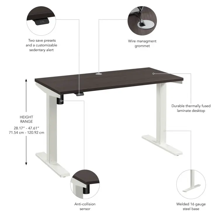 • Electric Height Adjustable Standing Desk includes a motorized base and 48" W x 24" D top surface with built-in wire management