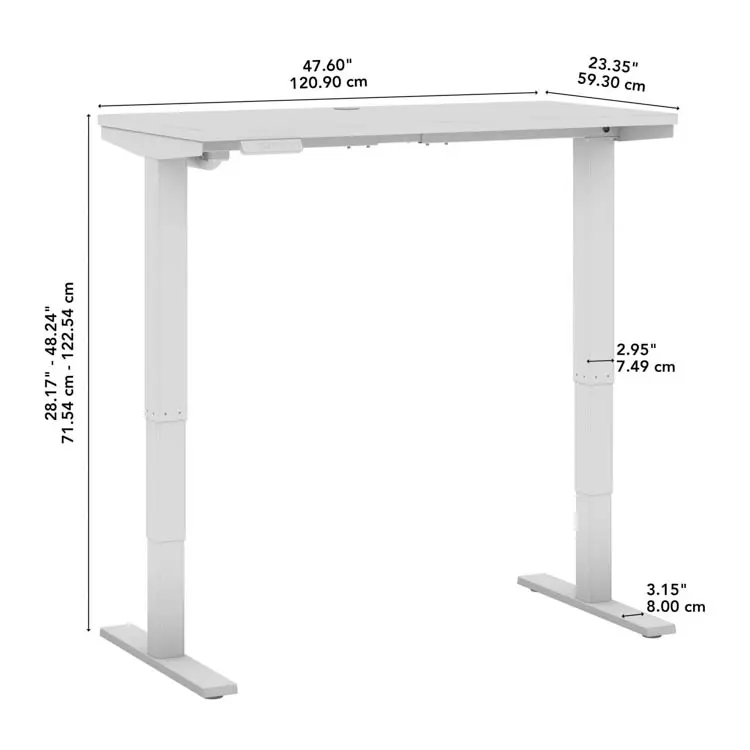 • Electric Height Adjustable Standing Desk includes a motorized base and 48" W x 24" D top surface with built-in wire management