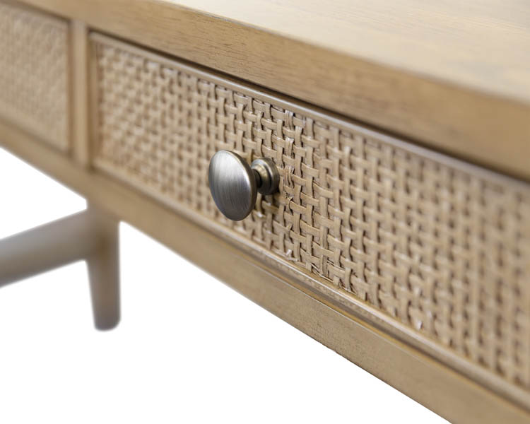 The warm mid-tone brown finish with golden highlights brings out the natural beauty of the wood veneers.